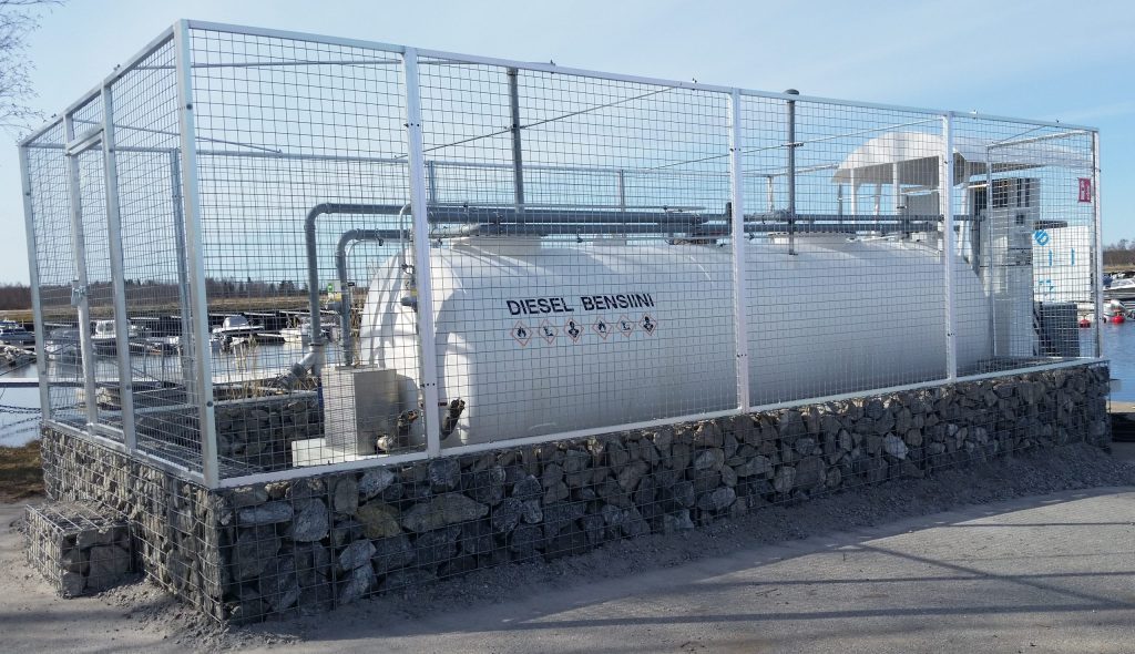 Verkkoseinät käyttöalueet Kaasuasema Lukittava aitaus kaasusäiliön ympäri.Korkeusvaatimus 2,5m Muuntamo Muuntamon verkkoseinä korkeilla turvallisuusvaatimuksilla.Korkea seinä pienellä verkon silmäkoolla. Jäteastioiden katos Lukittava pariovi pienellä silmäkoolla joka pitää linnut ulkona. Bränsletank Inhägnad bränsletank ovan jord, vägghöjd minst 2,5m.
